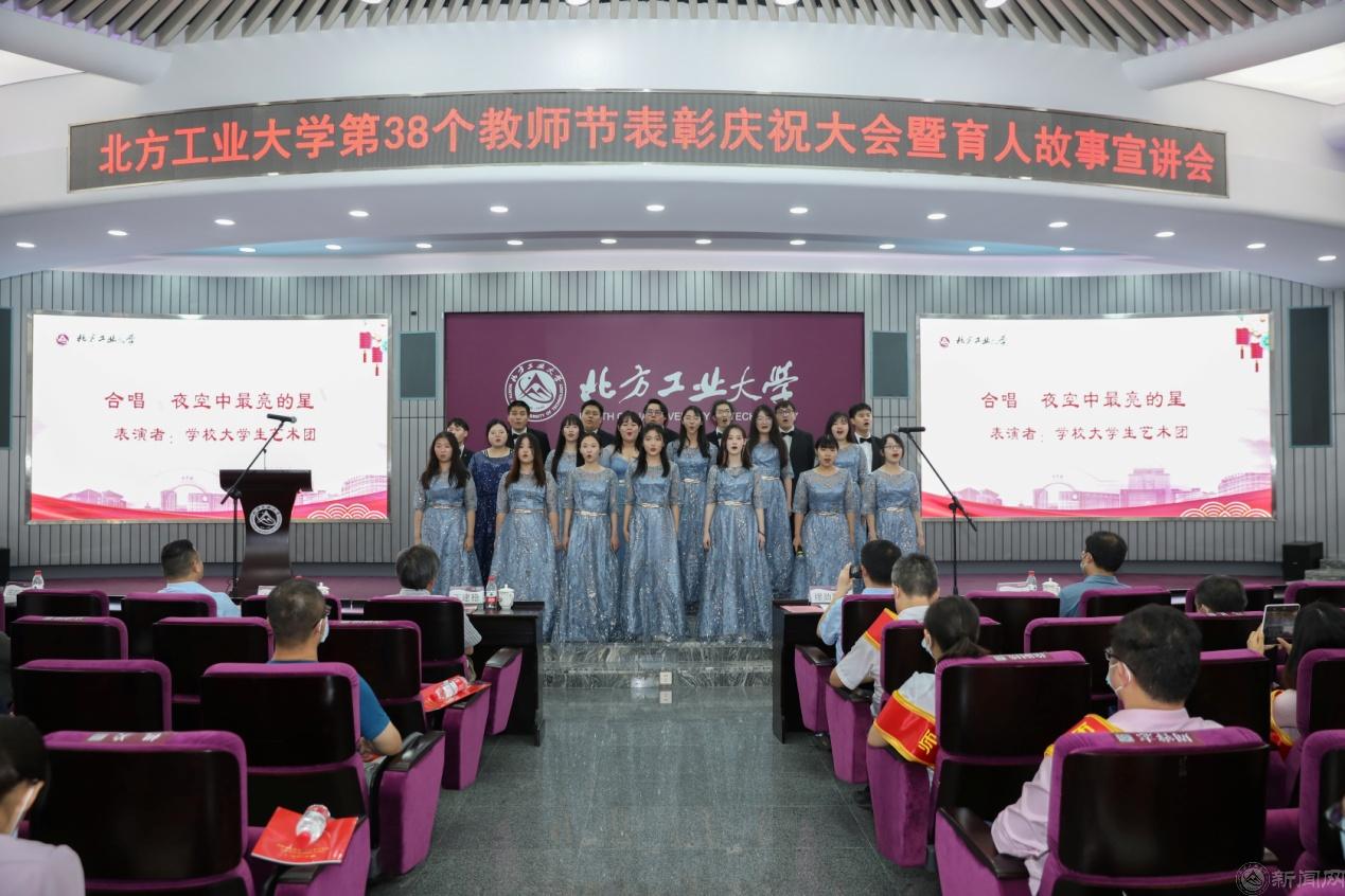 信息学院2019级刘英泽同学代表在校生向辛勤耕耘、默默奉献的老师们致敬,表达对老师的感谢与祝福。大会在学生合唱声中结束,悠扬动人的旋律,抒发学生感谢师恩的心声,传递学校尊师重教风尚。