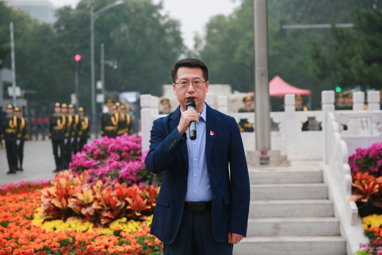 缪劲翔在升旗仪式讲话中用四句话和同学们分享了对国旗和升旗仪式的理解和感悟。旗帜就是历史和记忆。每一次升旗仪式都是对先烈的缅怀和对历史的追忆,只有铭记历史,才能继往开来。旗帜就是信念和方向。在党的领导下,我们迎来了从站起来、富起来到强起来的伟大飞跃,开辟了中国特色社会主义道路,迎来了实现伟大复兴的光明前景,每一次升旗仪式都使我们更加坚定道路自信和制度自信,我们要在党的领导下坚定不移地沿着中国特色社会主义道路继续前进。旗帜就是勇气和动力。在奥运赛场上,运动员们为了升起五星红旗奋力拼搏,勇争第一。作为青年学生,应当在属于自己的青春赛道上奋力奔跑,跑出新时代工大青年的最好成绩。旗帜就是责任和使命。同学们担负着实现第二个百年奋斗目标的责任和使命,要珍惜时光,不负韶华,做有理想有信念有作为有担当的青年,为实现中华民族伟大复兴努力奋斗。缪劲翔还代表学校向同学表示了国庆假期的美好祝福。