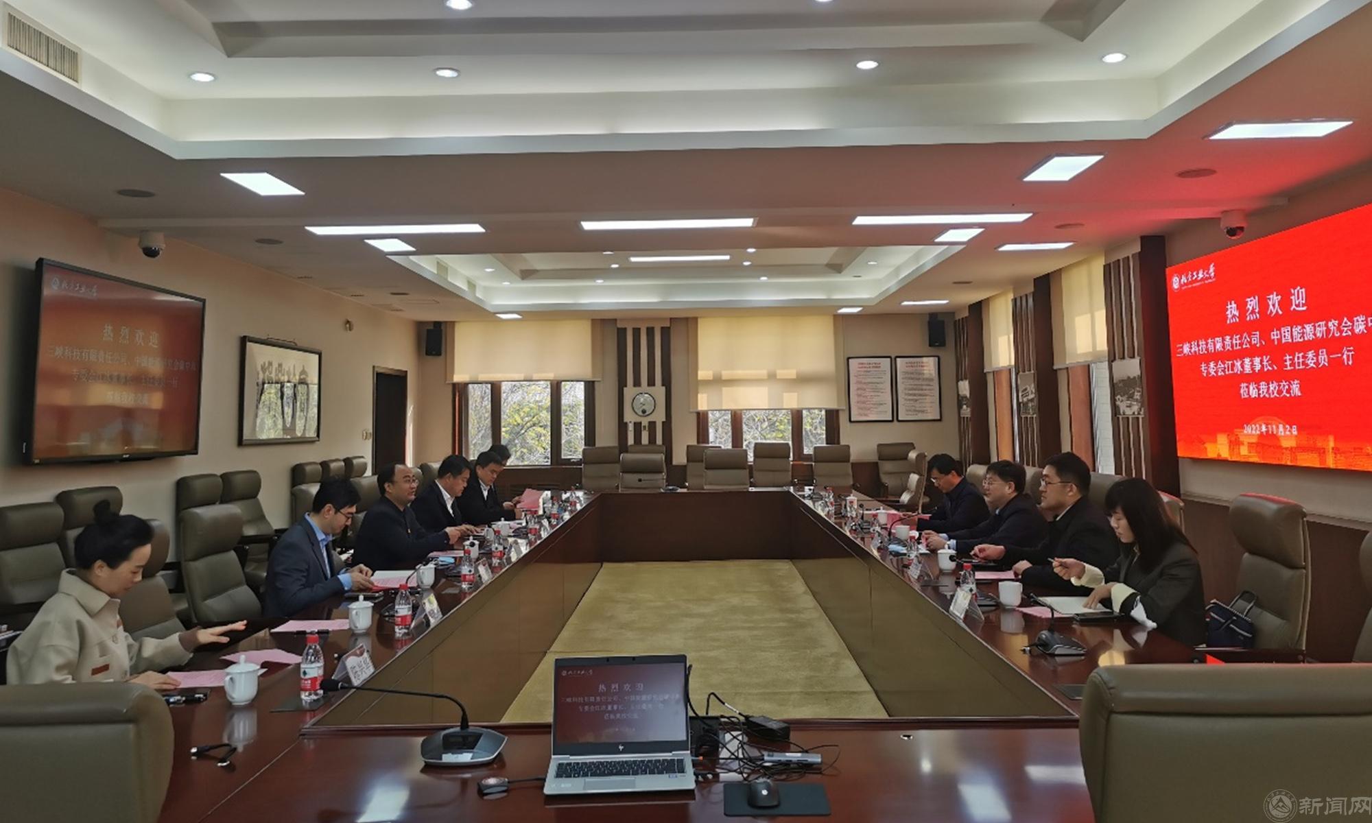11月2日上午,三峡科技有限责任公司(以下简称三峡科技)党委书记、董事长、中国能源研究会碳中和专委会主任委员江冰一行来永利官网调研交流。党委常委、副校长王力,校长助理陈群出席座谈会。