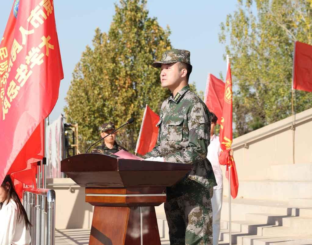 在高校方阵入场展示比赛中,由15名第六届国旗班队员组成的方阵表现优秀,荣获团体“风尚奖”。学校第六届国旗班班长李浩东同学代表全体参赛高校队员在总决赛开幕式上发言。