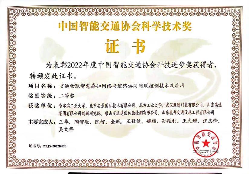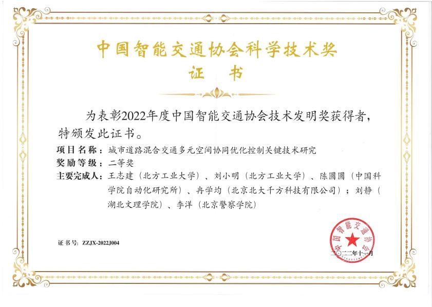 电气与控制工程学院陈智副研究员、吴文祥教授参与申报的“交通物联智慧感知网络与道路协同网联控制技术与应用”荣获2022年度中国智能交通协会科学技术进步二等奖。该项目围绕“交通物联智慧感知网络”,实现了实时路域环境感知、交通状态预测和实时交通预警控制。
