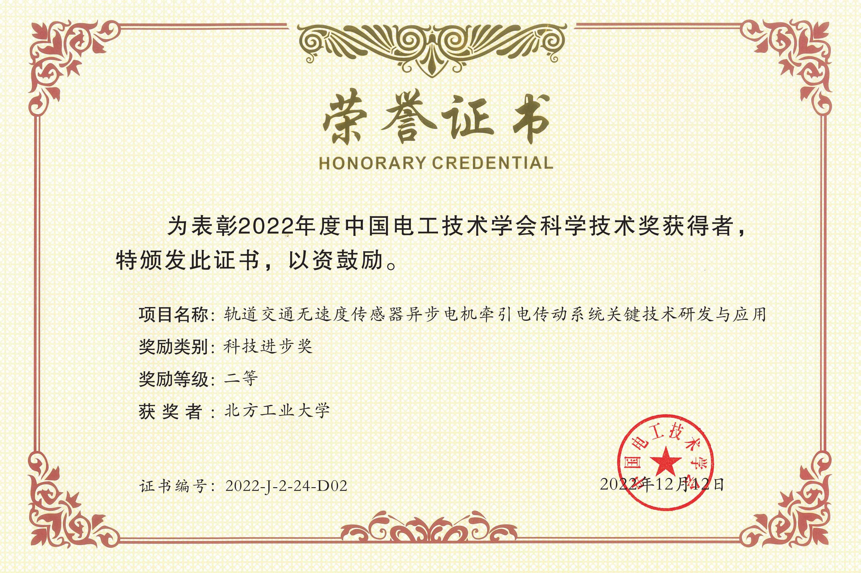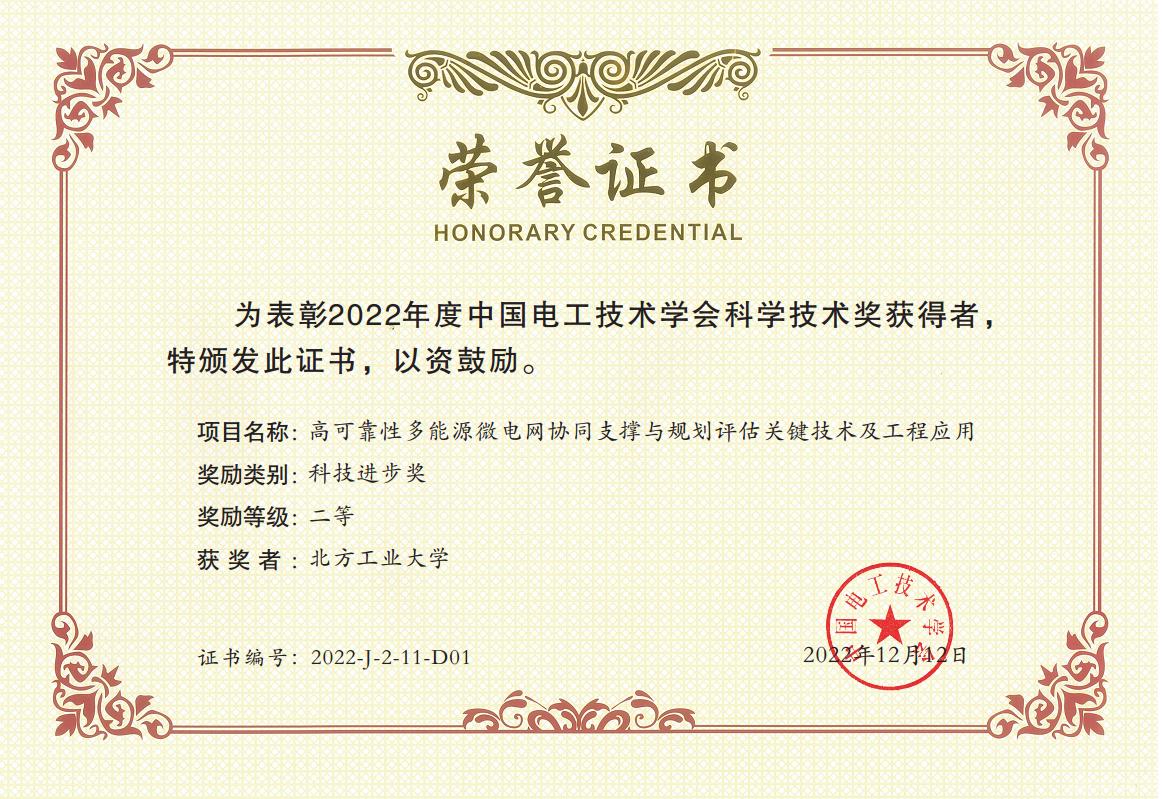 近日,中国电工技术学会公布了2022年度中国电工技术学会科学技术奖评审结果。由永利官网电控学院周京华教授申报的项目“高可靠性多能源微电网协同支撑与规划评估关键技术及工程应用”和苑国锋副教授申报的项目“轨道交通无速度传感器异步电机牵引电传动系统关键技术研发与应用”分获科技进步奖二等奖。