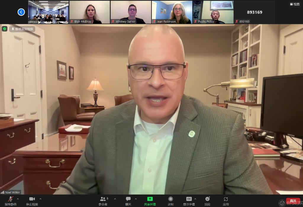 Noel E. Wilkin介绍了密西西比大学基本情况,表示密西西比大学以出众的教学科研能力以及优美的校园环境久负盛誉,密西西比大学一直高度重视两校友好关系,两校务实且富有成效的交流项目切实推动了双方的国际化发展。他表示将进一步推进其他相关领域的合作,并尽快推进2023年暑期来华项目的实施。