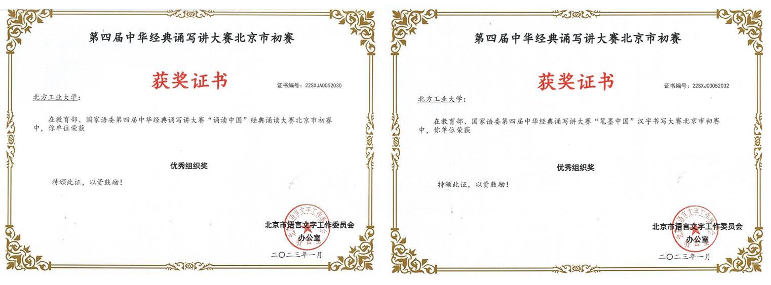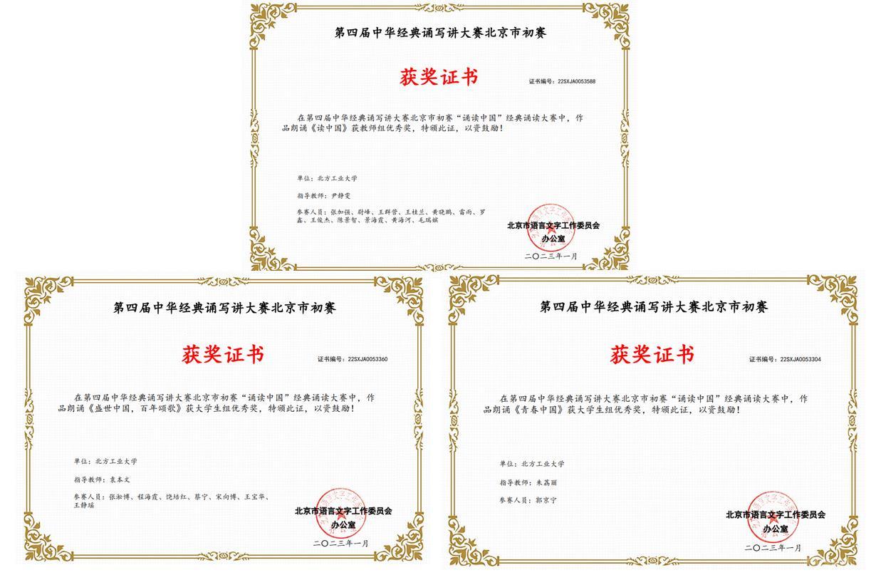 近日,北京市教委、市语委发布《关于公布2022年北京市中华经典诵读工程系列活动暨第四届中华经典诵写讲活动初赛获奖名单的通知》,永利官网在比赛中获得二等奖1项,优秀奖3项,优秀组织奖2项,获奖成绩取得新突破。