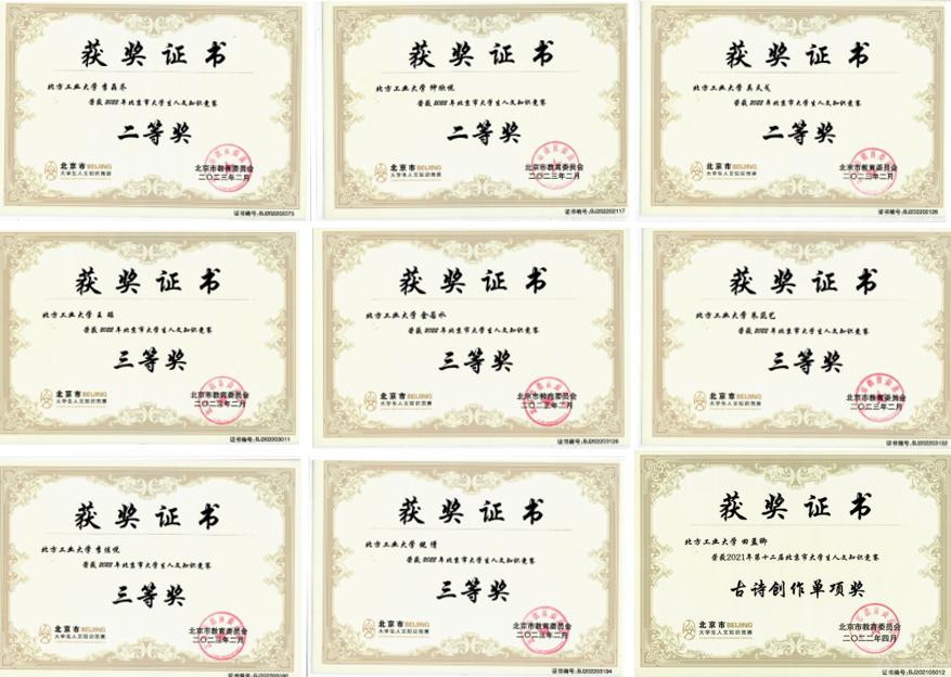 近日,2022年北京市大学生人文知识竞赛成绩揭晓,永利官网8位同学获奖,共获得二等奖3项、三等奖5项。