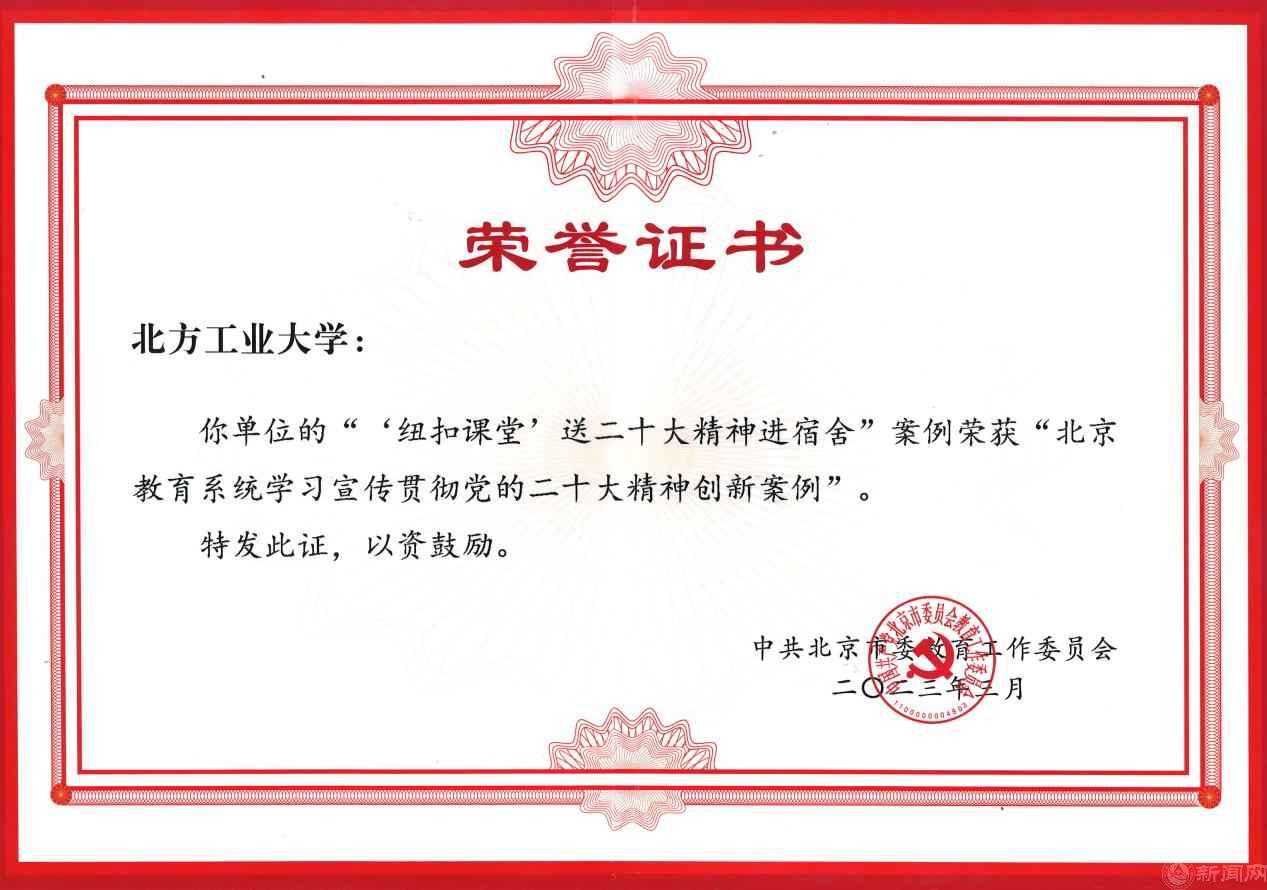3月14日,北京市委教育工委公布学习宣传贯彻党的二十大精神创新案例评选结果,永利官网报送的“‘纽扣课堂’送二十大精神进宿舍”成功入选。