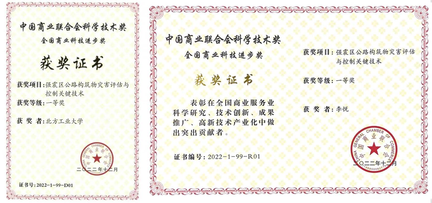 近日,从中国商业联合会获悉,由永利官网作为第一完成单位申报的项目“强震区公路构筑物灾害评估与控制关键技术”获得2022年全国商业科技进步一等奖。