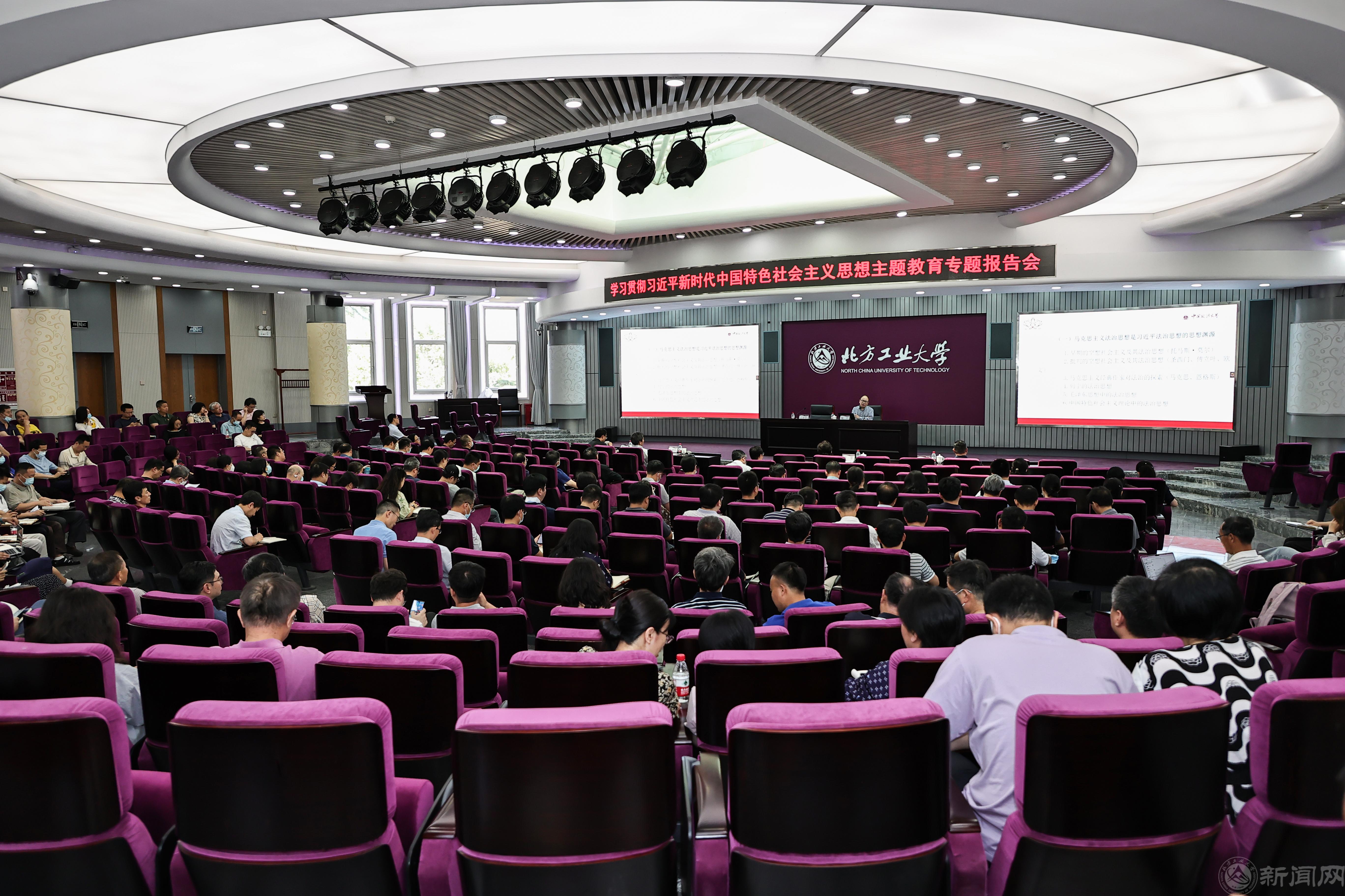 为扎实推进学习贯彻习近平新时代中国特色社会主义思想主题教育,按照学校党委工作安排,学校于6月15日下午举行学习贯彻习近平法治思想专题报告会,邀请中国政法大学习近平法治思想研究院副院长喻中教授做专题辅导报告。全体在校领导出席,学校处级干部、学院党委委员、责任教授、系主任、教工党支部书记、后勤部门经理、机关党员代表和部分学生代表参加学习。报告由党委常委、副校长王建稳主持。