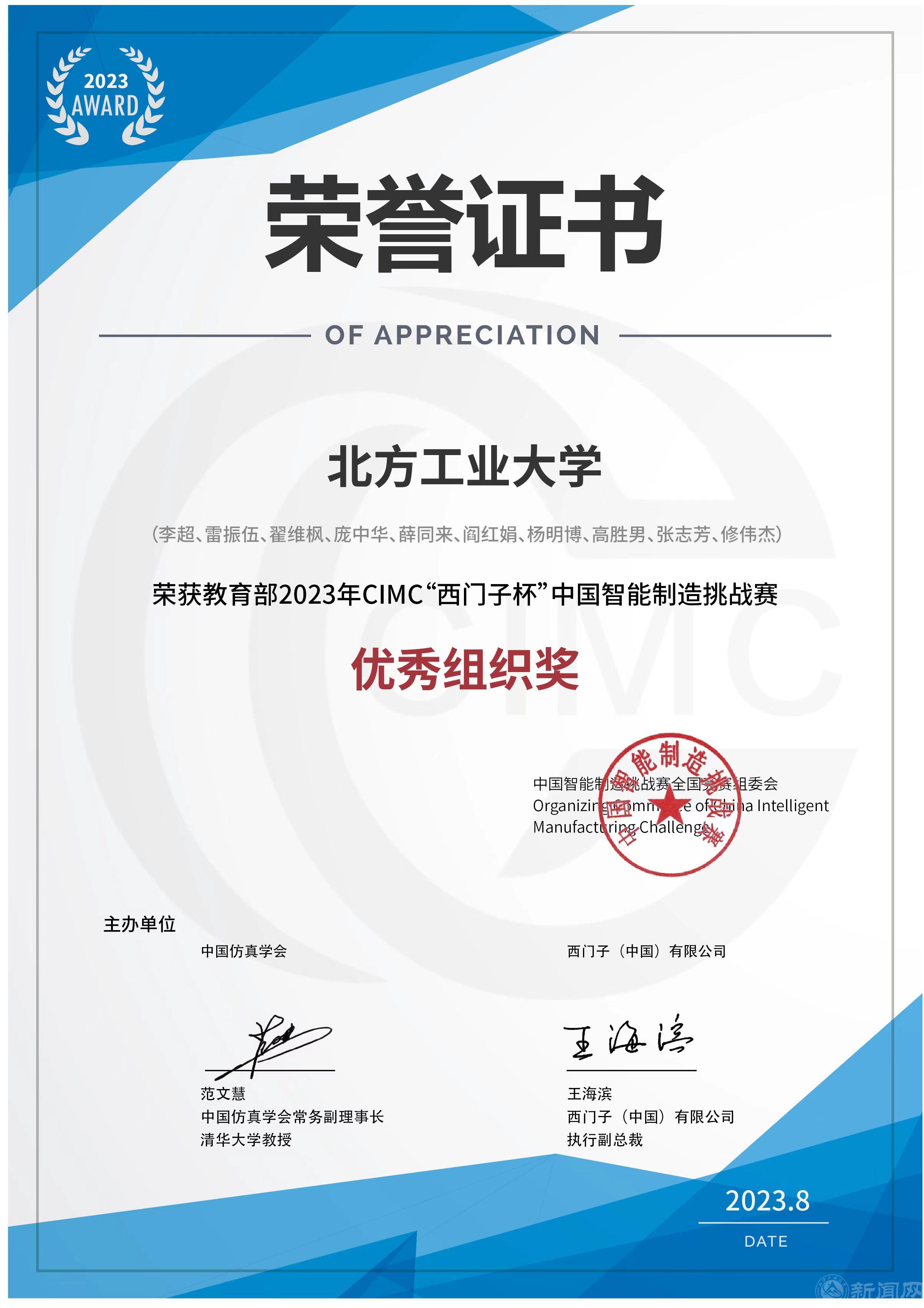 8月11日至15日,教育部第十七届“西门子杯”中国智能制造挑战赛全国总决赛在兰州理工大学进行。来自浙江大学、哈尔滨工业大学、304永利集团官网入口等243所高校的523支参赛队参加了总决赛9个赛项的角逐。由永利官网电气与控制工程学院李超、翟维枫、庞中华老师指导的“NCUT探月”队获信息化网络化赛项国家一等奖,“NCUT云影清松”队获智能产线与协作机器人赛项国家二等奖。李超、翟维枫2位老师获评2023年度优秀指导教师。