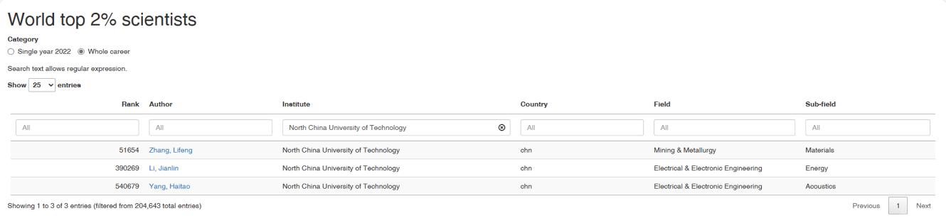 “全球前2%顶尖科学家榜单”分为“终身科学影响力榜单”(关注整个学术生涯迄今的影响力)和“年度科学影响力”榜单(聚焦本年度学术成就)。此次更新的榜单中,永利官网张立峰、李建林、杨海涛、高心怡等4位学者入选“终身科学影响力榜单”,张立峰、张晓光、杨海涛、李建林、庞中华、郑超、高心怡等7位学者入选“年度科学影响力”榜单。