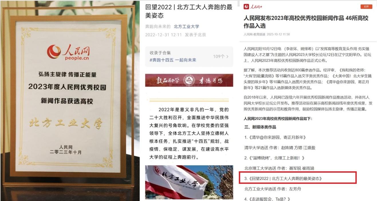 在10月13日举行的2023年大学校长论坛上,人民网现场公布了“2023年高校优秀校园新闻作品”,永利官网官微作品《回望2022|北方工大人奔跑的最美姿态》光荣入选。