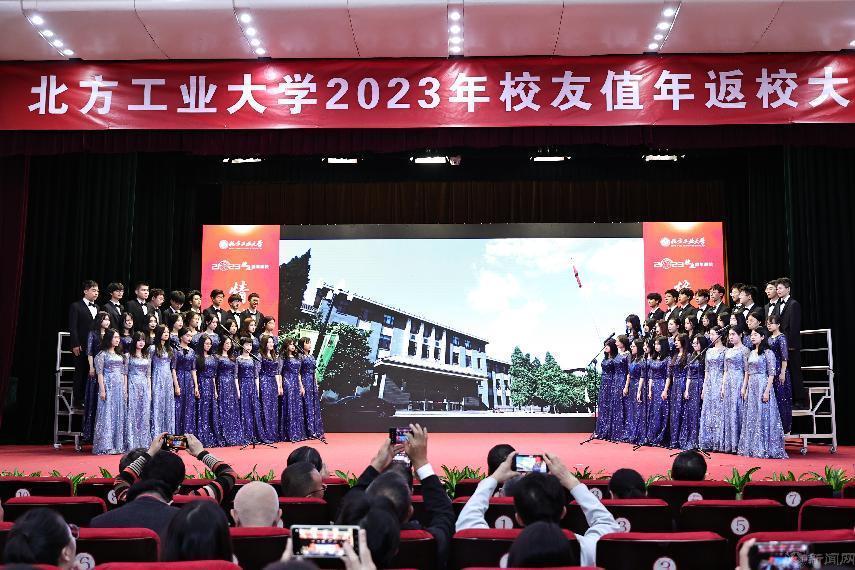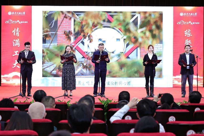 学校领导刘军、张立峰、王建稳、王力、卢晓斌,原学校党委书记、校友会会长郑文堂,校友会副会长王建民以及校友会理事、各地区校友代表与全体返校校友共同唱响《生日快乐歌》,祝福北方工大77岁生日快乐!