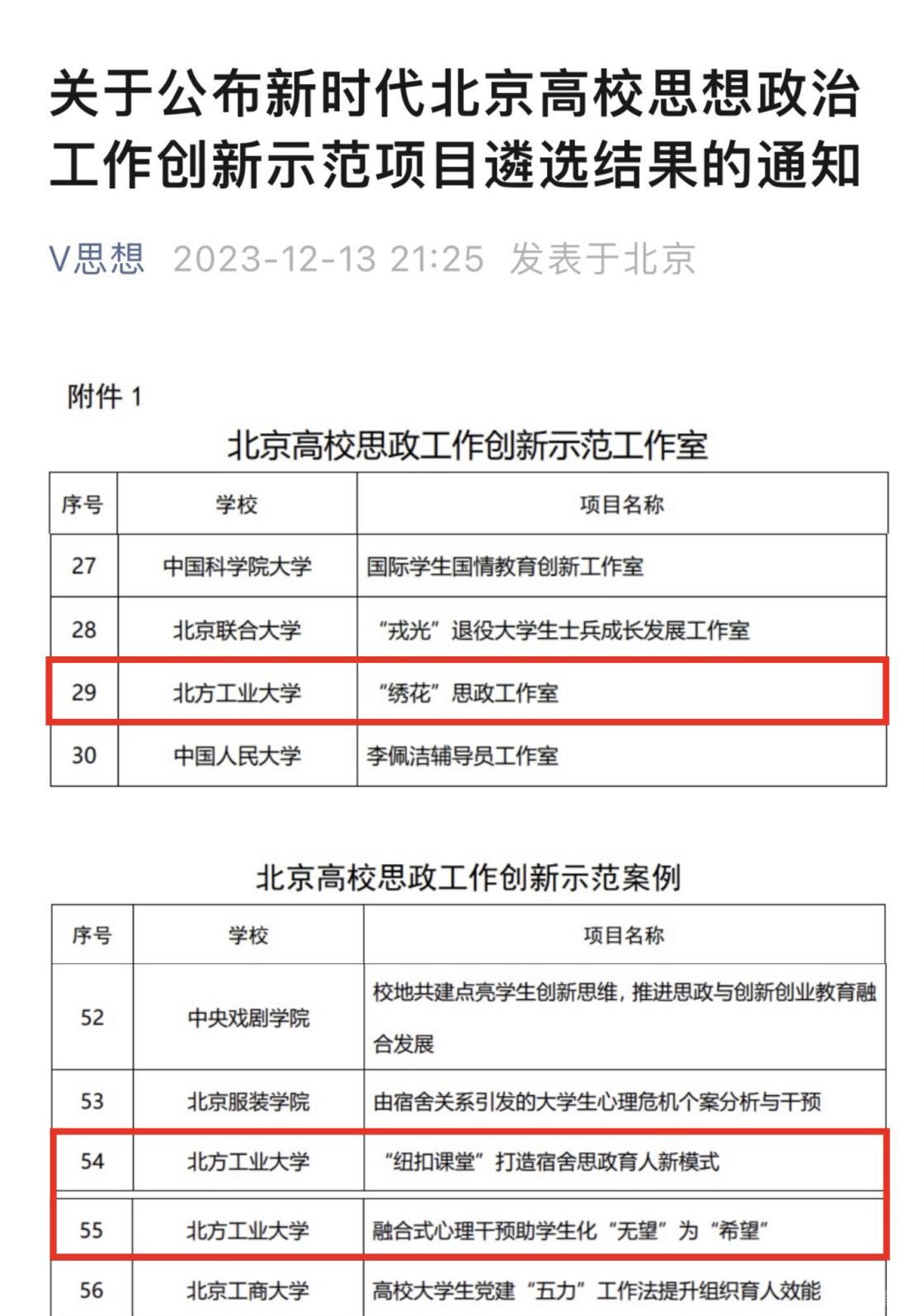 学校高度重视思想政治工作队伍建设,深入做好学生思想政治教育工作,构建了有北方工大特色的学生思想政治工作体系,取得了多项成果,助力高水平应用型大学建设不断取得新成绩。
