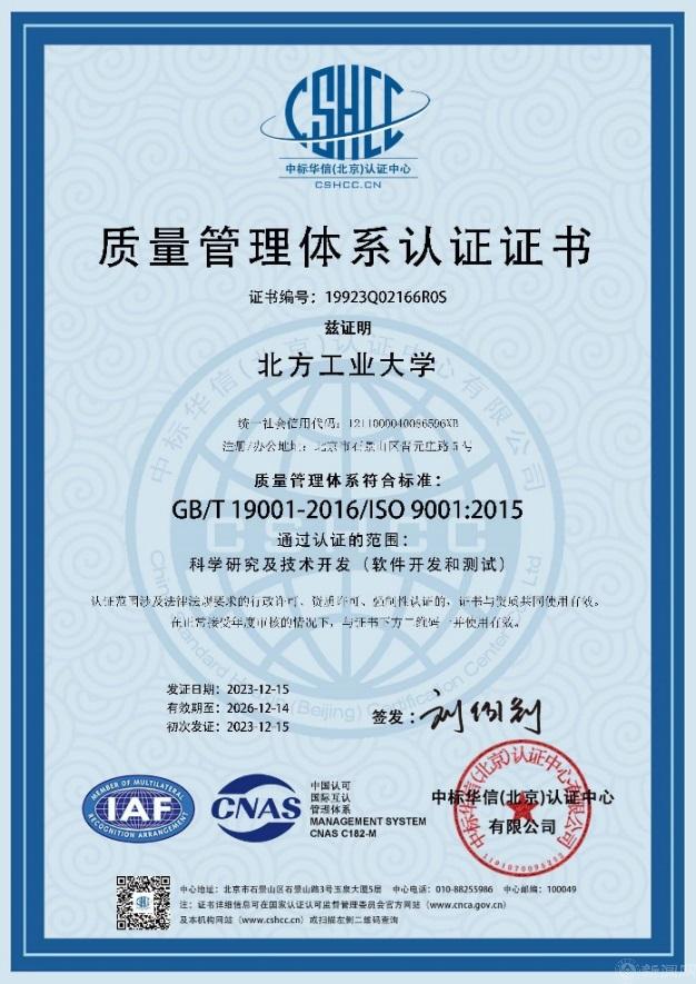 近日,永利官网顺利通过ISO9001质量管理体系认证,获得中标华信(北京)认证中心颁发的ISO9001质量管理体系认证证书。