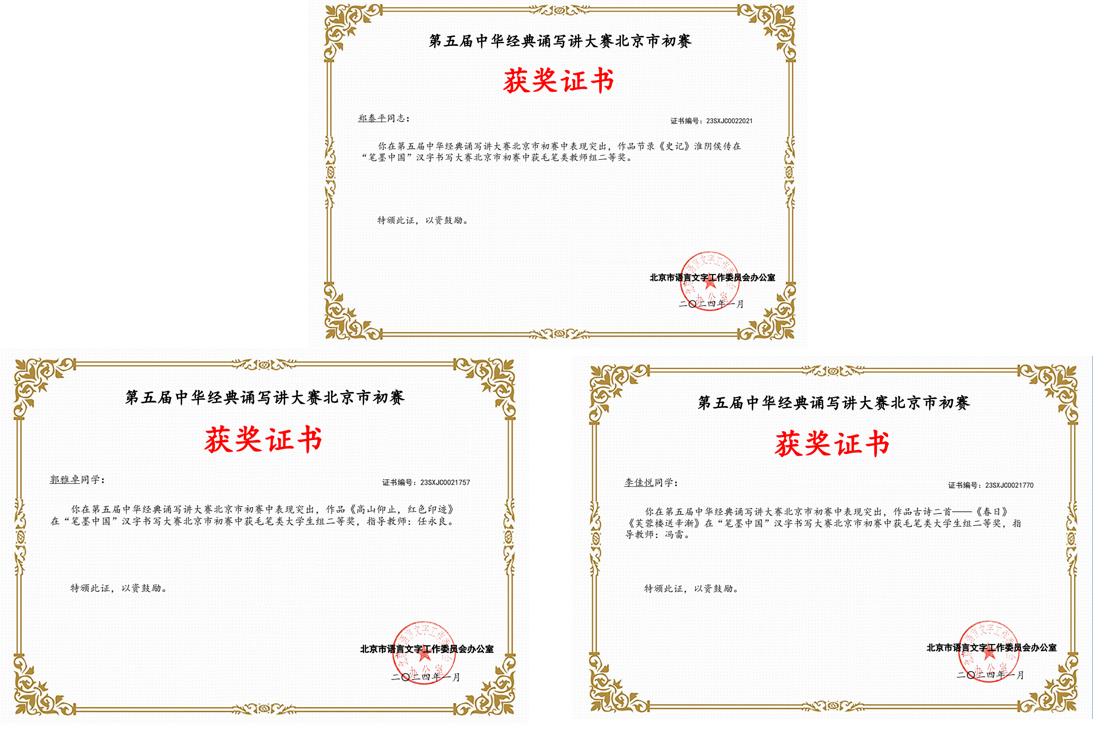 近日,北京市教育委员会、北京市语言文字工作委员会联合公布第五届“中华经典诵写讲大赛”北京赛区获奖名单,永利官网在比赛中喜获佳绩。学校获评“笔墨中国”分赛优秀组织奖和“诵读中国”分赛优秀组织奖,师生共获得13个奖项,其中二等奖3项,三等奖6项,优秀奖4项。