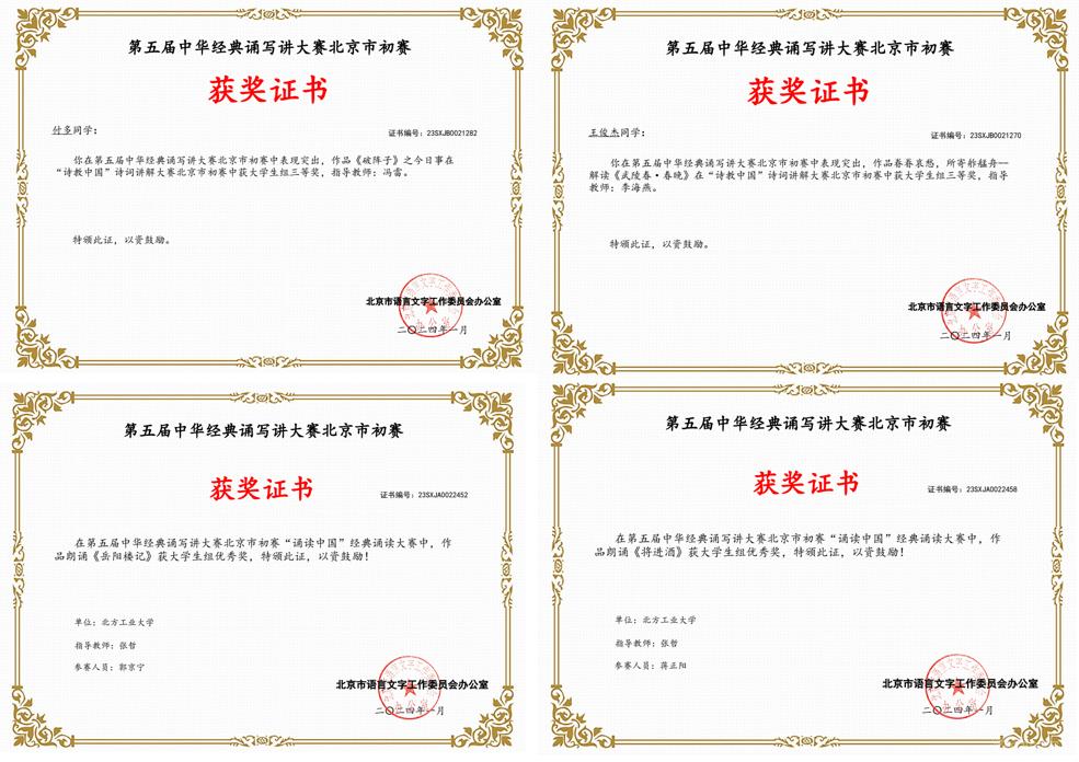 学校延续传统优势,在“诗教中国”诗词讲解比赛分赛中获得三等奖2项,在“诵读中国”经典诵读比赛分赛中获得优秀奖4项。