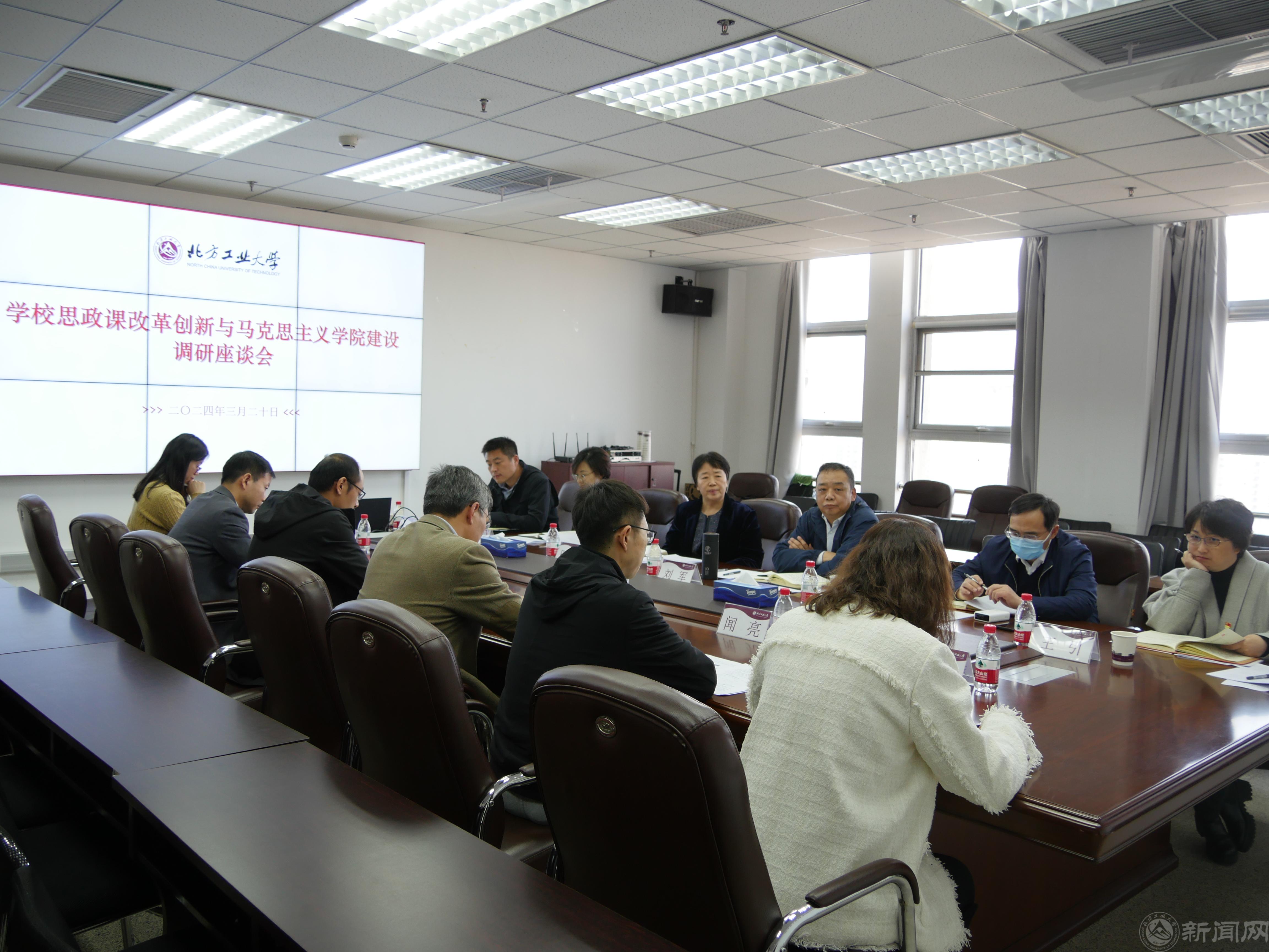 刘军指出,思政课是落实立德树人根本任务的关键课程,也是习近平总书记最为重视的一门课。马克思主义学院作为思政课教学主责单位,要有“第一学院”的政治觉悟和责任担当,要主动思考北方工大马院在“样板建设”中的使命任务,深入推动思政育人工作落地落实,切实发挥好思政课作为立德树人关键课程、马克思主义学院作为理论学习研究阐释主阵地的重要作用。围绕新时代思政课改革创新和北京市重点马院建设,刘军提出三点要求:一是要发扬传统,深入挖掘“形势与政策”课的传统底蕴,进一步推动思政课实践教学改革创新,夯实学校思政课和马院建设基础。二是要形成特色,全面对接学校办学定位和人才培养目标,创新内容与形式,彰显304永利集团官网入口的思政育人特色。三是要练就“一招鲜”,深刻思考并回答工业大学马院“何为”的时代命题,坚持需求导向和育人导向,把传统和特色打造成学校事业发展的金字招牌。在座谈交流环节,刘军强调,马院要以“工业兴国、工业报国、工业强国”为主线,讲好学校的传统特色,讲出学校的时代担当,用生动鲜活的工大故事提升思政育人实效,为高水平应用型大学建设增砖添瓦。