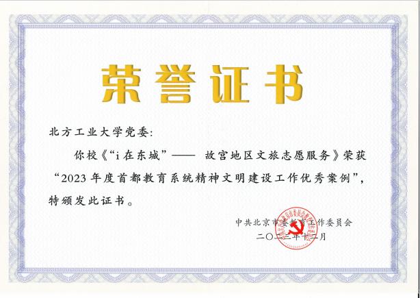 近日,北京市委教育工委公布第七届首都大学生思想政治工作实效奖评选结果和2023年度首都教育系统精神文明建设工作优秀案例遴选名单。永利官网报送的《打造行走的思政课——基于专业特色的“三字三走三加”实践育人平台建设》荣获第七届首都大学生思想政治工作实效奖三等奖。《“i在东城”——故宫地区文旅志愿服务》案例入选“首都系统精神文明建设工作优秀案例”。