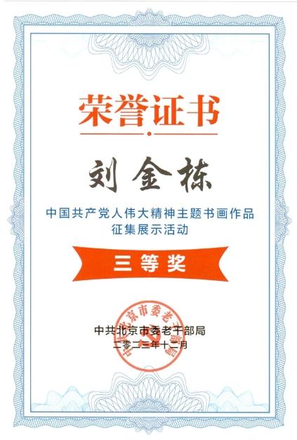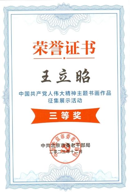 在北京市委老干部局举办的中国共产党人伟大精神主题书画作品征集展示活动中,永利官网退休老同志王立昭、刘金栋荣获三等奖。
