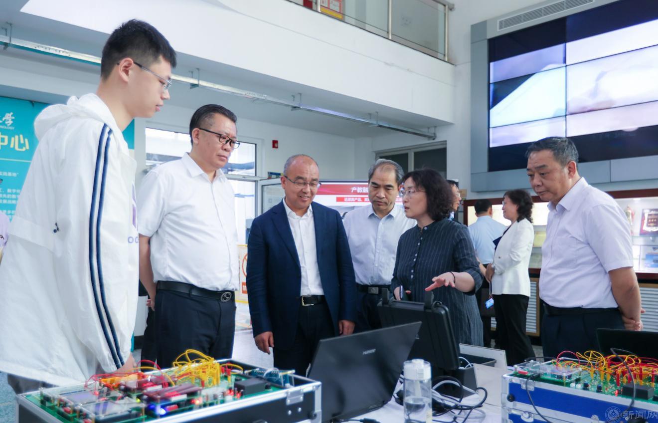 随后,于英杰书记一行来到“工程训练国家级教学示范中心”,听取学校关于深化本科教育教学改革的情况汇报,参观了智能制造实验室,与现场实习学生进行深入交流,观看学生科技创新作品,对永利官网在推进产教融合和数字化转型方面取得的成绩给予肯定。
