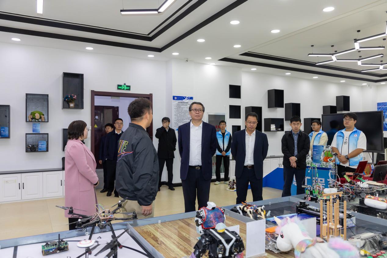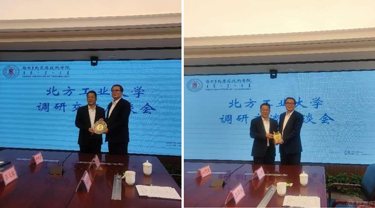 9月30日上午,张立峰一行来到鄂尔多斯应用技术学院,参观了大飞机学院、信息工程系科创中心,并与鄂尔多斯应用技术学院党委书记李向东,党委副书记、校长宫箭,党委委员、副校长刘建座谈交流。