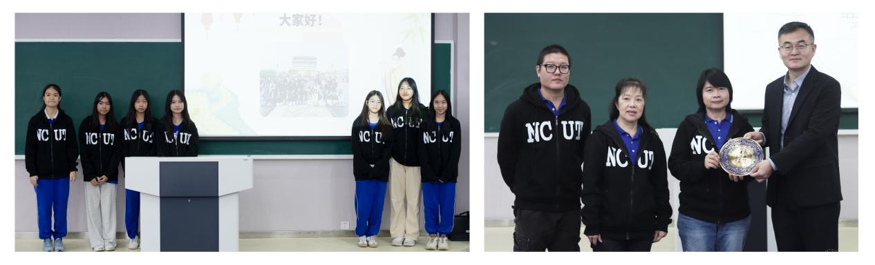 学生们分组进行了学习成果汇报,展示了自己在中文学习、文化体验以及参观交流中的心得感受,同时表达了对中国文化的热爱与敬仰。带队教师王美佳代表清迈王子学校对永利官网的精心组织和周到安排表达了衷心的感谢,表示此次美好的经历将激励学生们继续学习中文,并期待着再次与北方工大相聚。国际学院院长韩飞代表学校向研修团赠送校训盘,并希望与泰国清迈王子学校有更深入的交流合作。