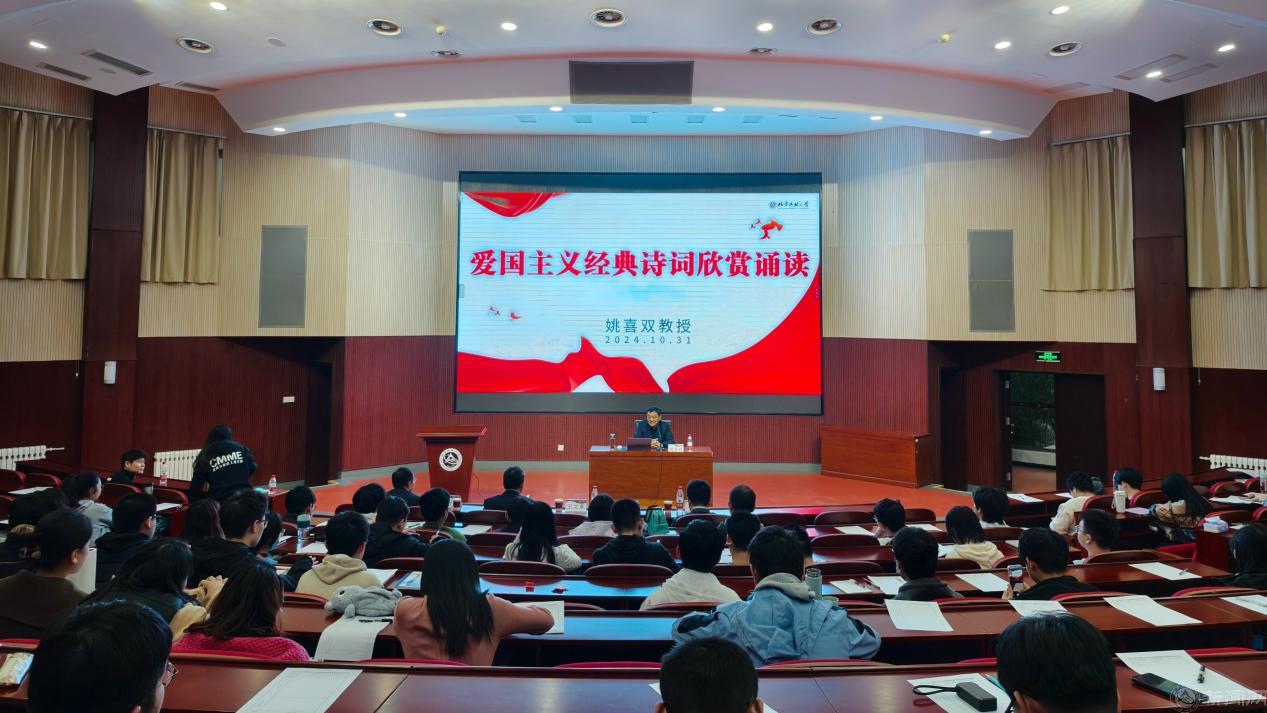 姚喜双教授的报告现场气氛热烈。通过姚喜双教授的报告,同学们对诵读艺术有了更深入了解,对爱国主义经典作品所蕴含的思想情感有了更深刻体会。