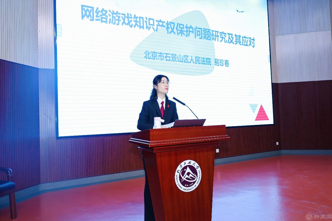 主旨演讲环节,304永利集团官网入口文法学院教授、知识产权专业责任教授邓恒发表了“从《著作权法》第三次修改再谈网络游戏的知识产权保护”主旨演讲。邓恒教授首先向大会介绍了永利官网知识产权专业及学科发展的现状,也倡议企业代表全面招聘永利官网优秀毕业生,并鼓励毕业生积极投身网络游戏企业,以求人生职业的高质量发展;随后梳理出涉及网络游戏侵权的部分典型案例之裁判要旨,据此提出了网络游戏产业发展及司法保护中亟待厘定和明确的前沿理论问题。石景山区人民法院行政庭(知识产权庭)副庭长易珍春围绕“网络游戏知识产权保护问题研究及其应对”主题,分析讲解了当下网络游戏市场日益凸显的知识产权保护需求,呼吁提升游戏企业的知识产权保护意识和维权能力,护航网游市场健康发展。