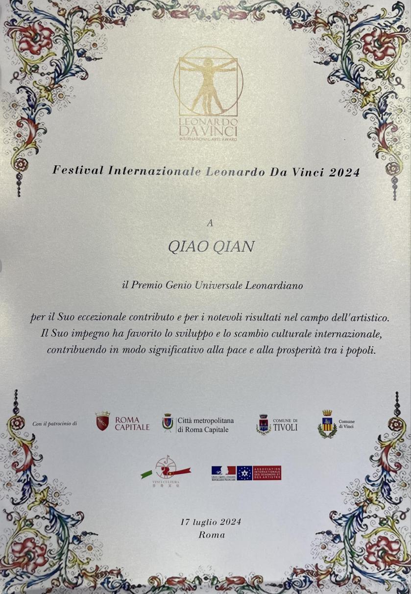 近日,2024达·芬奇艺术奖颁奖典礼在罗马市政厅揭幕。本次颁奖典礼由意大利国会参议院议员Alessandro Battilocchio 先生、罗马市文化旅游和时尚设计委员会主席Mariano Angelucci先生、意大利达·芬奇国际文化艺术交流协会会长Wang tianqi先生、副会长Alessandro Petrini 先生主持并颁奖。永利官网乔迁老师获评杰出艺术家奖,这一殊荣旨在表彰在艺术领域具有杰出成就的艺术家与研究者。