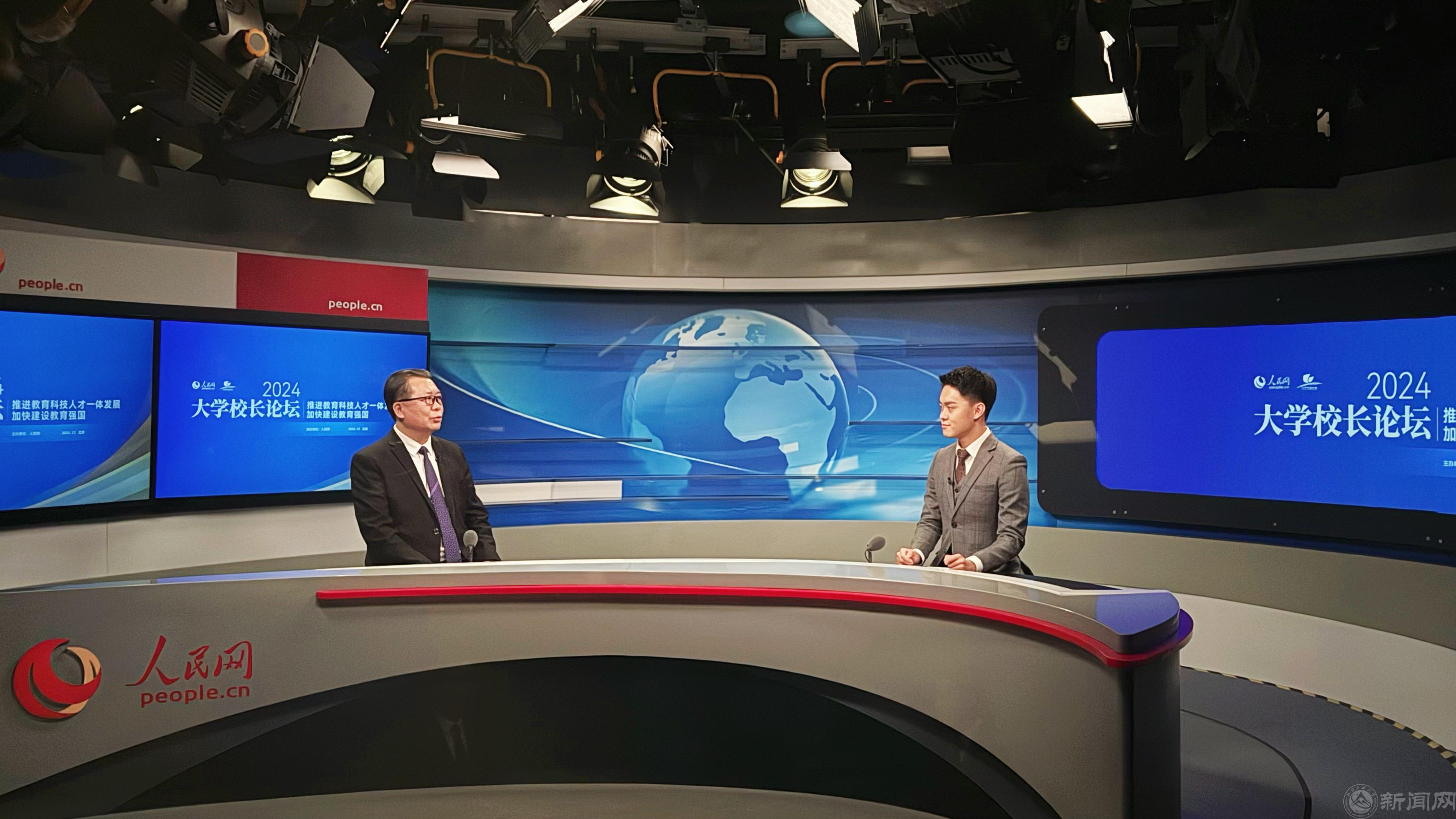 12月27日,人民网2024大学校长论坛在人民日报社举办,来自全国百余所高校的领导和嘉宾齐聚一堂,围绕“推进教育科技人才一体发展 加快建设教育强国”主题交流研讨。党委副书记、校长张立峰受邀出席论坛,并接受人民网视频专访。