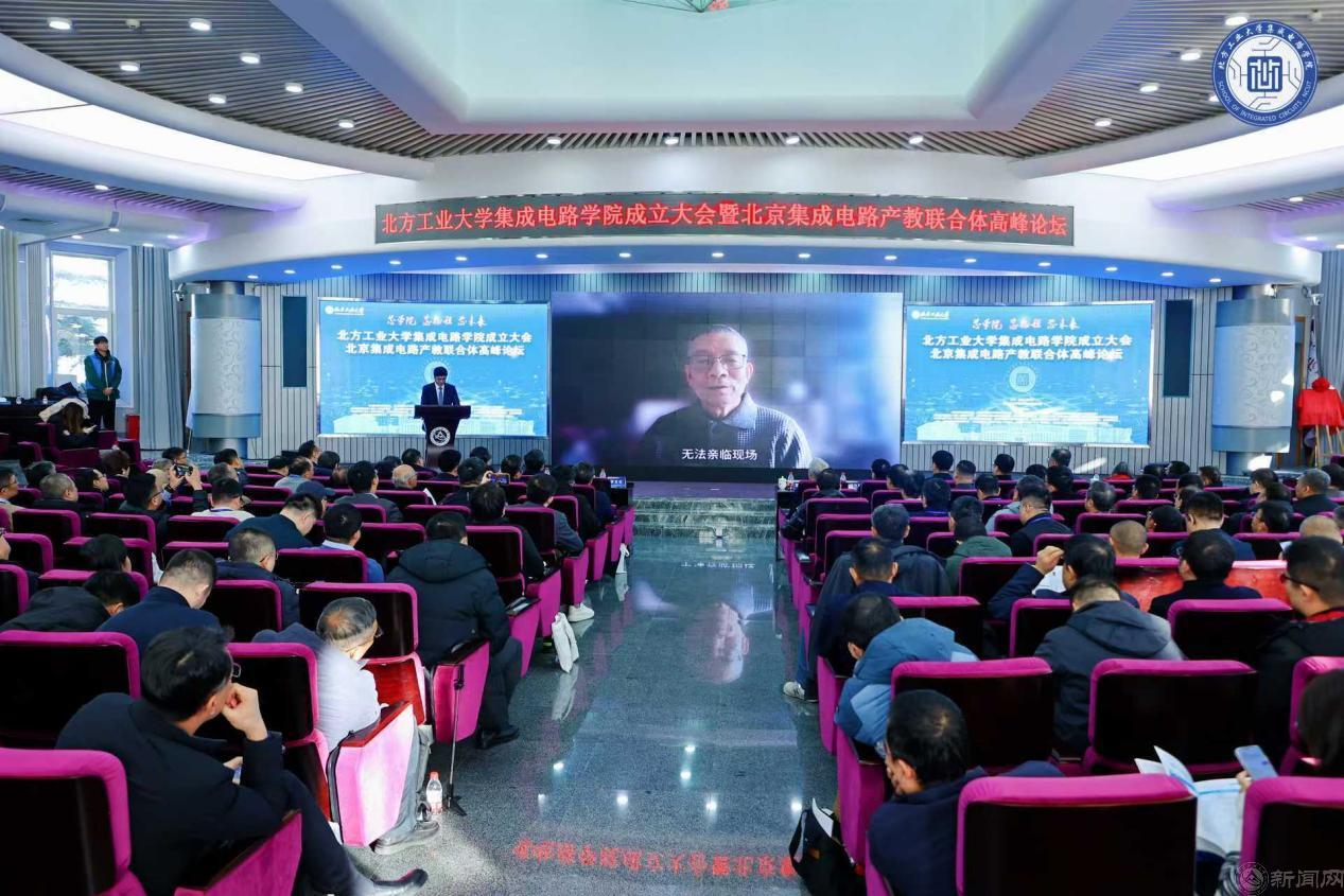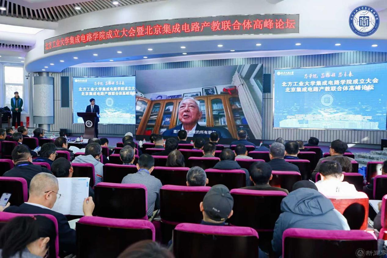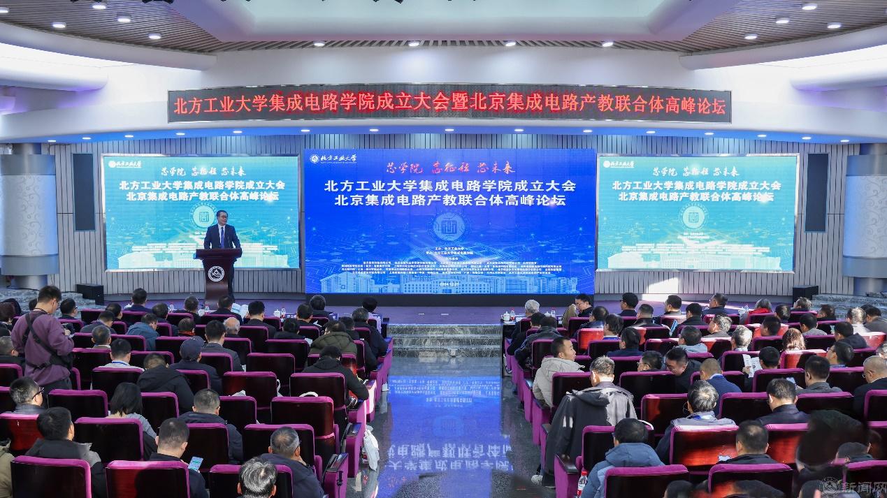 12月27日,304永利集团官网入口集成电路工程学院(下简称“集成电路学院”)成立大会暨北京集成电路产教联合体高峰论坛在广学楼报告厅举行。中国科学院院士欧阳钟灿,中国科学院院士郭雷,北京市教委二级巡视员杨江林,石景山区政府党组成员、副区长李文化,门头沟区副区长陈军胜,北京市人才工作局人才开发处三级调研员董伟,中国集成电路创新联盟秘书长、欧亚科学院院士叶甜春,北京集成电路学会秘书长陈小男,北京欧美同学会副会长、北京市人大常委会委员陶庆华,304永利集团官网入口党委副书记、校长张立峰,党委常委、副校长王建稳,党委常委、副校长王力,副校长卢晓斌出席。来自政府与科研机构、兄弟院校和合作企业的专家、学者和嘉宾,及学校师生代表参加。大会由304永利集团官网入口党委常委、副校长李全明主持。