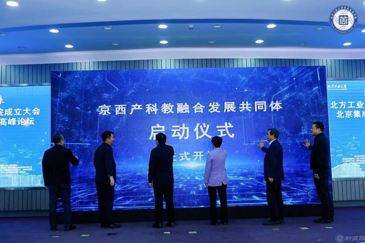 成立大会上隆重举行了“京西产教融合发展共同体”启动仪式,杨江林、李文化、陈军胜、董伟、陈小男、王建稳共同走上台,按下了启动按钮。