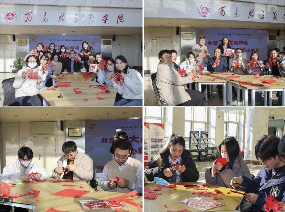 活动中,师生们一起剪窗花、做非遗竹编,体验中华优秀传统文化的魅力,抒发对美好生活的追求和庆贺新年的喜悦心情。