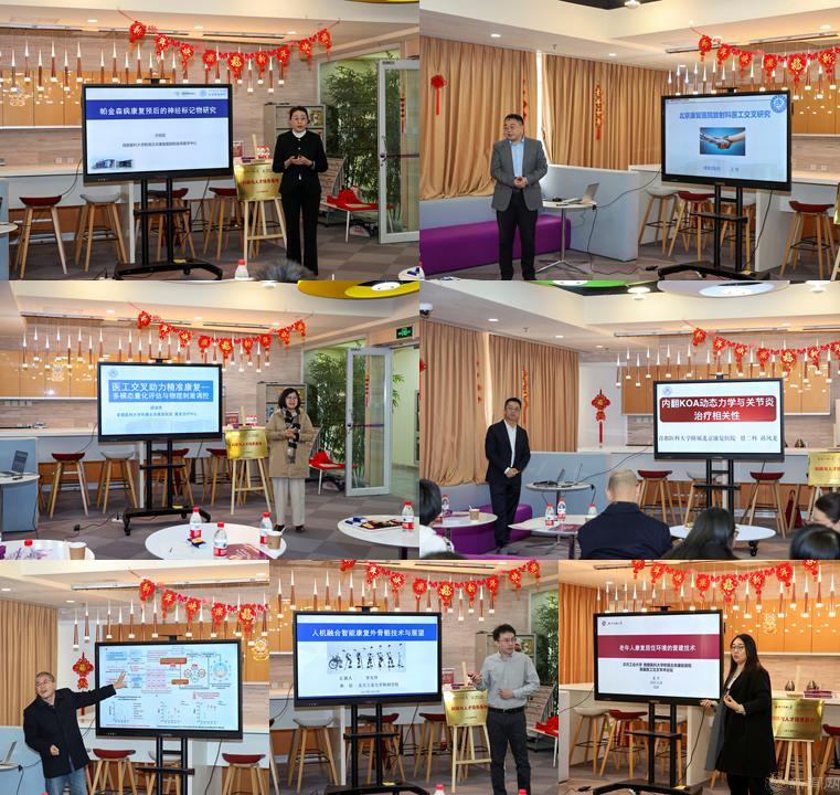 学术报告环节由建筑与艺术学院院长王新征教授主持。来自永利官网与北京康复医院的七位专家学者通过主题报告呈现了医工交叉领域的最新研究成果。在智能康复技术方向,方伯言教授分享了帕金森病生物标记物研究进展,机材学院李克祥博士系统介绍了外骨骼机器人技术的研发成功;在精准医学研究方面,孙凤龙主任揭示了膝关节生物力学特征与关节炎发展的关联机制,郄淑燕主任展示了基于多模态数据的康复评估成果;信息学院王华锋教授团队则提出了人工智能在睡眠监测中的创新应用。此外,建艺学院温芳博士和王伟主任分别从康复环境设计与医学影像分析维度,探讨了工程技术创新在医疗场景中的实践路径。