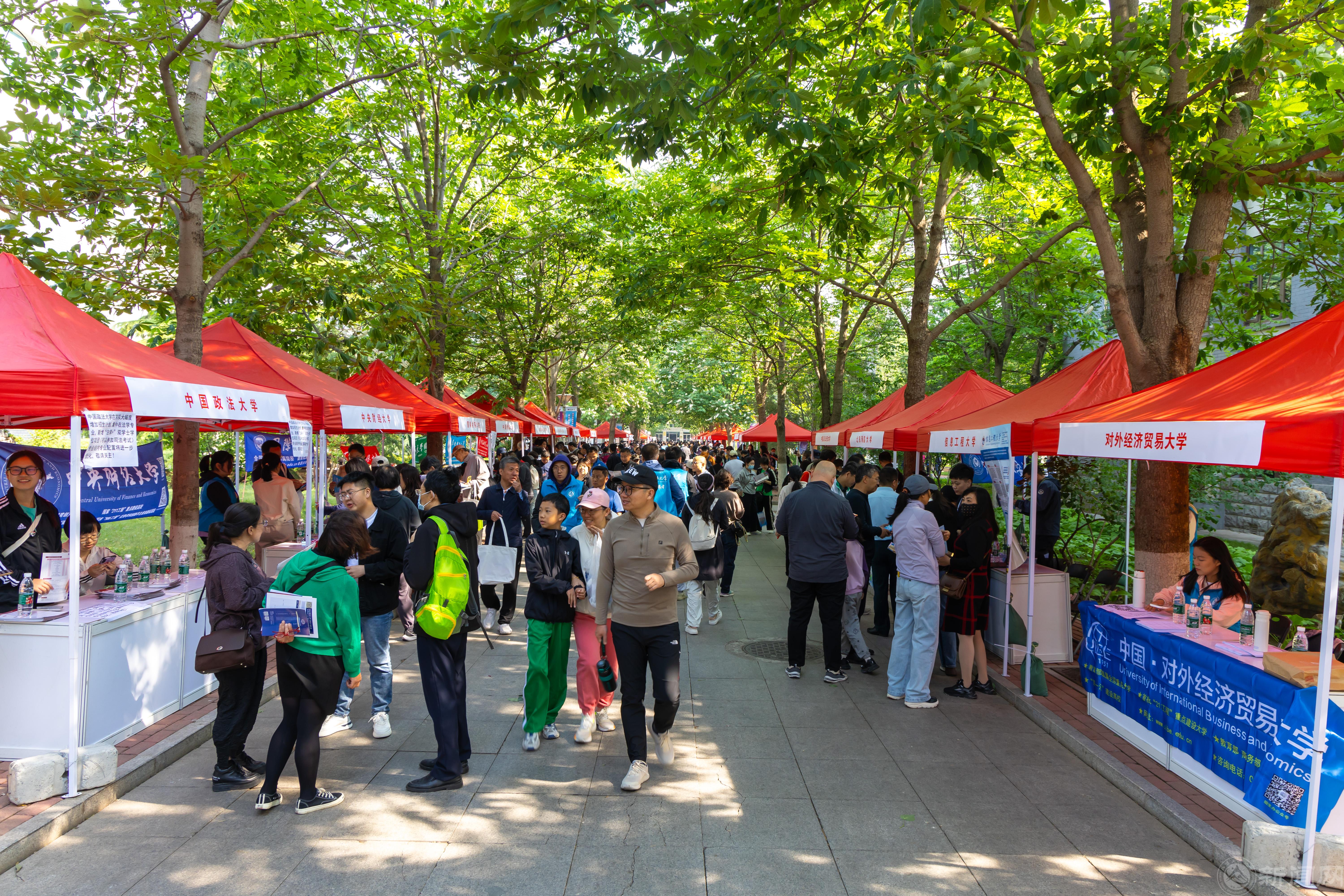 此次咨询活动主要在学校国槐路、明德路沿线开展,共设置73个展棚,供在京高校进行展示和咨询。