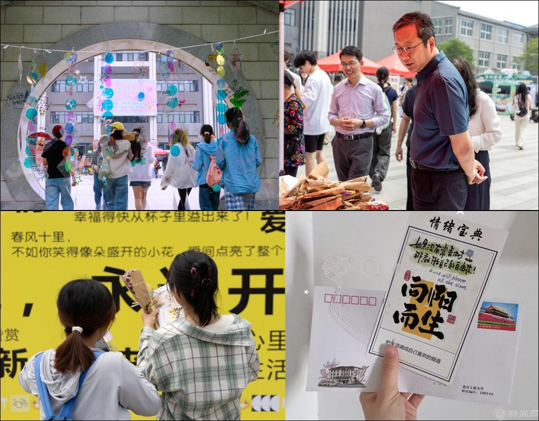 2025年5月21日中午,心理健康季主题室外活动在毓秀广场和毓秀园举行。活动由学工部和校团委联合主办、学生会承办,以“美润心田 ‘享’愈集市”为主题,通过创意体验项目,帮助学生放松身心、疏解情绪、积极成长,吸引了2000余名师生参加。