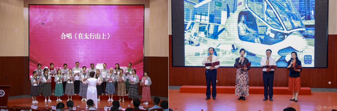 离退休教职工表演的合唱《妈妈教我一支歌》《在太行山上》、诗朗诵《亲爱的党,鲜红的旗》抒发了老同志纪念中国人民抗日战争暨世界反法西斯战争胜利80周年的真挚情感,展现了“退休不褪色、永远跟党走”的饱满精神状态。