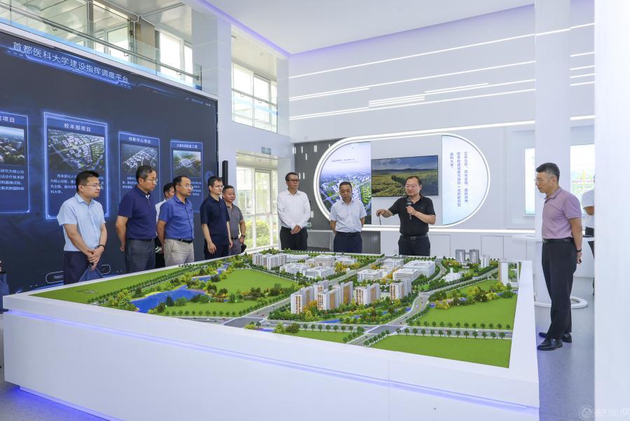 为学习兄弟高校典型经验,高质量推进延庆校区建设,7月2日下午,党委书记刘军、校长张立峰带领学校党委理论学习中心组一行前往首都医科大学新校区(校本部)项目现场调研,首都医科大学党委书记呼文亮、副校长徐良热情接待学校一行。