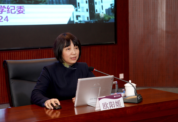校纪委书记欧阳媛围绕监督执纪问责,结合永利官网工作实际,就近期实施的《中国共产党纪律检查机关监督执纪工作规则(试行)》及永利官网2017年纪检监察工作要点、党风廉政宣教计划、提醒约谈函询诫勉实施办法、主体责任全程记实办法等五个重要文件进行了深入浅出、全面系统、具体详尽的解读,为党员干部如何切实扛起责任、履行“一岗双责”释疑解惑。