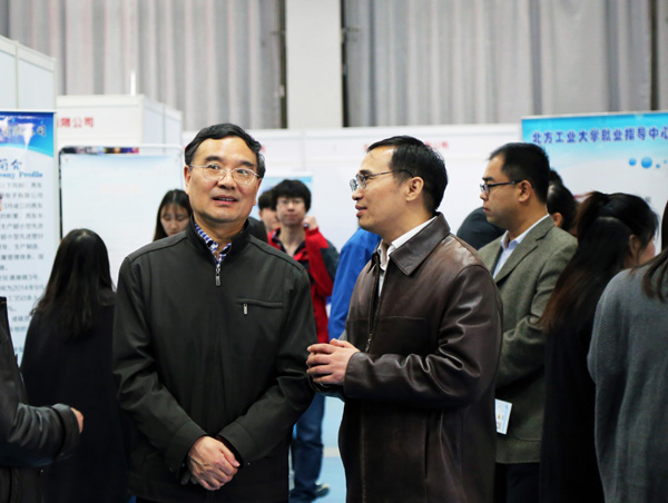 校长郑文堂来到双选会现场,指导毕业生就业工作。他详细了解了招聘会的组织情况并与来校招聘企业进行了交流。针对当前严峻的就业形势,郑校长就如何做好精准就业市场拓展及人才培养专业匹配方面提出了四点要求:一是向人才市场做好永利官网人才培养及毕业生宣传工作,积极开拓就业市场;二是深入了解招聘单位对毕业生的招聘需求和用人要求,不断提高招聘会质量,培养重点合作用人单位;三是要做好毕业生就业指导工作,让学生了解就业市场,合理定位,积极就业;四是做好以专业为单位的就业统计分析,形成通畅及时的反馈机制,使专业人才培养进一步匹配经济社会需求,进一步提高永利官网人才培养质量。