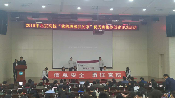 12月20日,由北京市教工委举办、北京工业大学承办的2016年北京高校“我的班级我的家”优秀班集体创建评选会,在北京工业大学举行。永利官网计算机学院信安13-2班从全市50余所高校300余个班级中脱颖而出,代表学校参与评选答辩,表现出色,最终获得了北京市“优秀示范班集体”的称号。