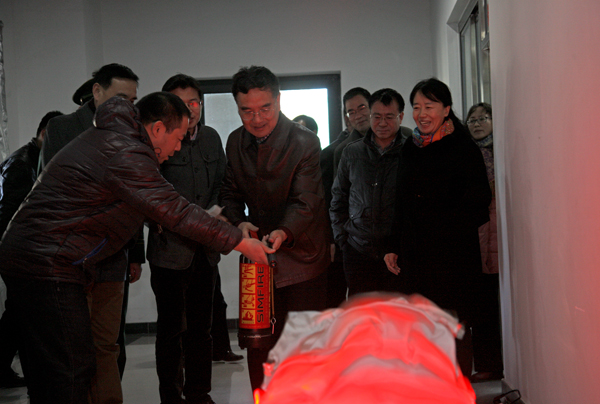 校长郑文堂、校党委副书记田红芳郑重为学校微型消防站揭牌。