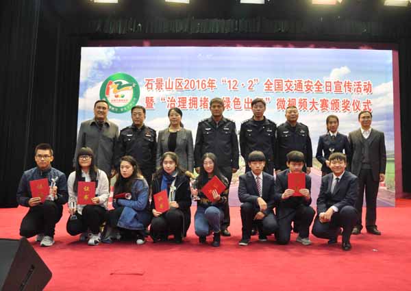 12月1日,石景山区“12.2”全国交通安全日宣传活动暨“治理拥堵、绿色出行”主题微视频作品大赛颁奖仪式在永利官网图书信息楼报告厅隆重举行。参加活动的有石景山公安分局、市交管委、区交通支队、区文明办、区安监局等部门领导,学校党委副书记田红芳出席颁奖仪式并致辞。