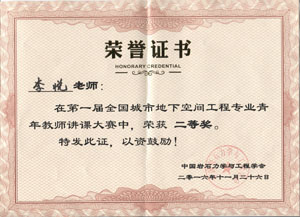 永利官网土木工程学院李悦老师在第一届全国城市地下空间工程专业青年教师讲课大赛中获得二等奖,由柴文革、张军徽老师指导的闫晓丰、张德利、江云倩学生团队在第一届全国城市地下空间工程专业大学生设计大赛中获得二等奖,展现了永利官网师生的风采。此次研讨会旨在推动我国城市地下空间工程专业健康快速发展,提高专业人才的培养质量。