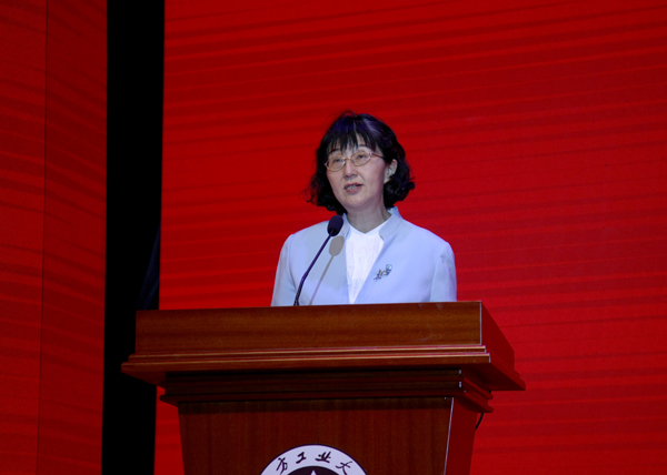 张雪书记代表市委教工委、市教委向学校师生、校友致以热烈的祝贺。她在讲话中充分肯定了学校在教育教学、科学研究、文化传承和服务社会等方面取得的成就,希望北方工大作为市属院校,勇担责任和使命,在推动京津冀一体化战略中发挥重要作用。她要求学校要继续弘扬光荣传统,不断培养优秀人才;高度重视科技创新,持续提升创新能力;坚持服务社会发展,努力造福人民群众。