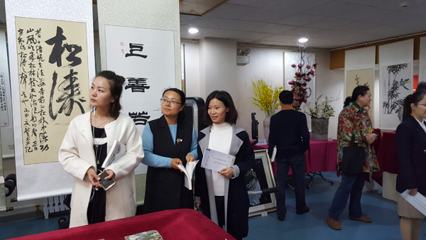 304永利集团官网入口书画协会副会长、图书馆副馆长隋俊宇在揭幕仪式上发言,感谢学校党政及校工会对书画协会的关怀与支持,并表示继续把书画协会工作推向深入,以便更好地为书画爱好者及广大师生服务。书画协会会员、文法学院英语系教师陈文芳作为书画爱好者在揭幕仪式上发言,感谢学校对教职工书画协会的重视,使教职工的业余文化生活得以丰富多彩,并表示要与广大书画爱好者一道用手中的画笔描绘北方工大的美丽明天。