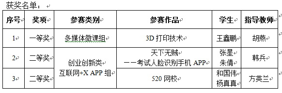 比赛过程中,永利官网学生精心准备,努力克服设计创意、技术应用、工学矛盾等重重困难,在指导老师的鼓励及悉心指导下,在同学们的辛勤努力下,最终荣获佳绩。充分展示了永利官网学生良好的精神风貌和较高的计算机应用水平,也充分体现了永利官网教师扎实的专业素养。