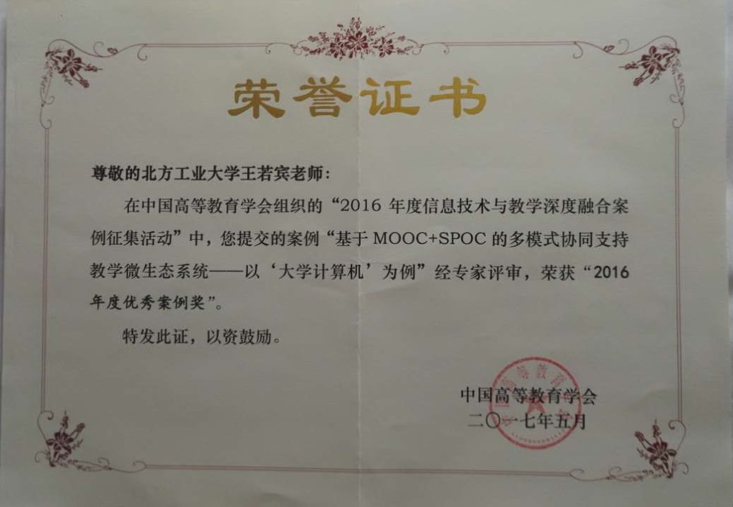 5月13日,由永利官网计算机学院教师王若宾博士执笔,计算机科学与技术系计算机基础教研室教师共同完成的教学案例“基于MOOC+SPOC的多模式协同支持教学微生态系统——以‘大学计算机’为例”荣获中国高等教育学会“推进信息技术与教学深度融合”2016年度优秀案例奖。
