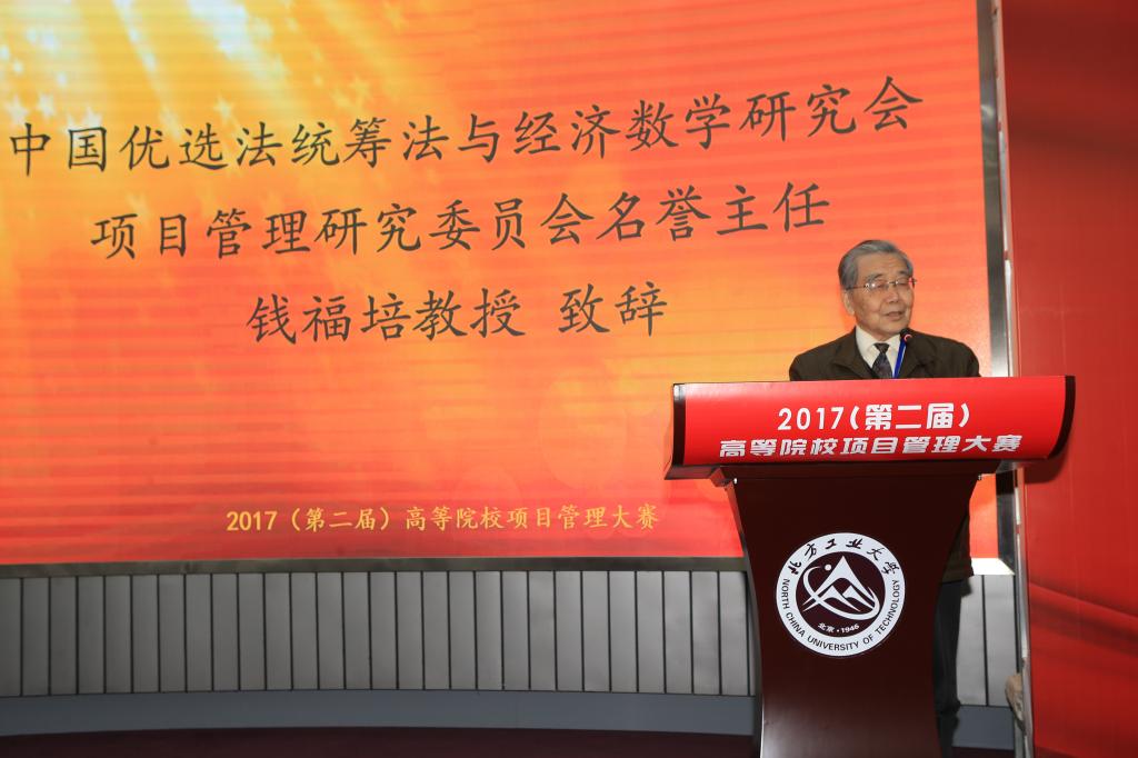 颁奖典礼上,304永利集团官网入口党委书记郑文堂、中国优选法统筹法与经济数学研究会理事长池宏、PMRC名誉主任钱福培分别致辞。郑文堂书记在致辞中表示,全国高等院校项目管理大赛是青年项目管理者自己的大赛,希望通过项目管理理论知识与软件实操的竞赛活动,激发青年大学生学习项目管理理论、关注项目管理实践的热情,搭建起青年大学生项目管理专业交流的平台和建立友谊的桥梁。