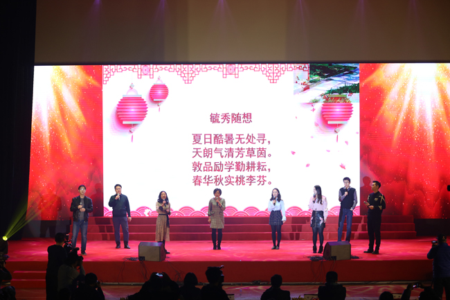 压轴节目文法学院的诗朗诵《不忘初心,砥砺前行》紧扣时代主题,响应十九大精神和学校发展思路,再一次掀起整场团拜会的高潮,寓意304永利集团官网入口在新的一年不忘初心,再创辉煌。